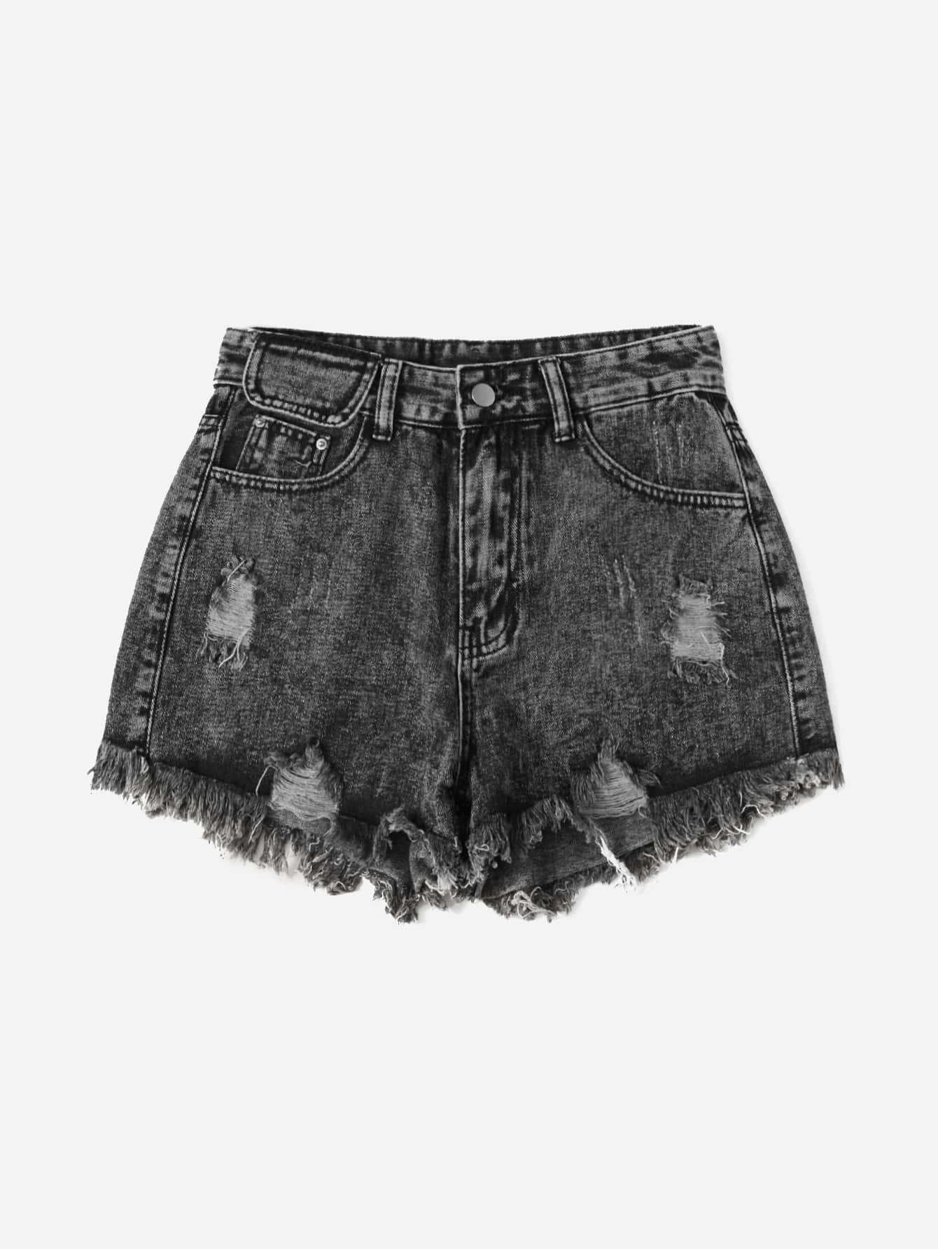 Short en jean à ourlet effiloché déchiré