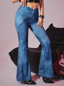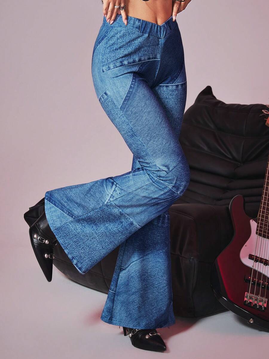Pantalon évasé à effet jean réaliste pour femmes