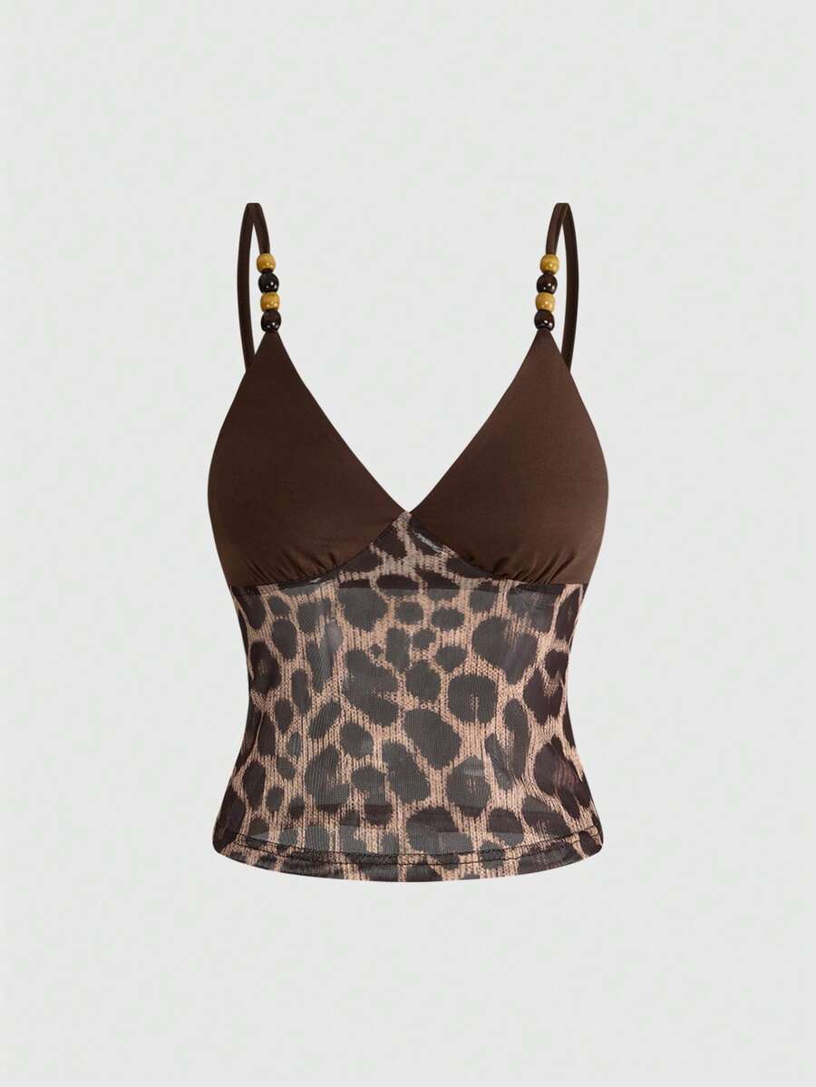 Débardeur femme style hippie, patchwork imprimé léopard rétro pour festival de musique