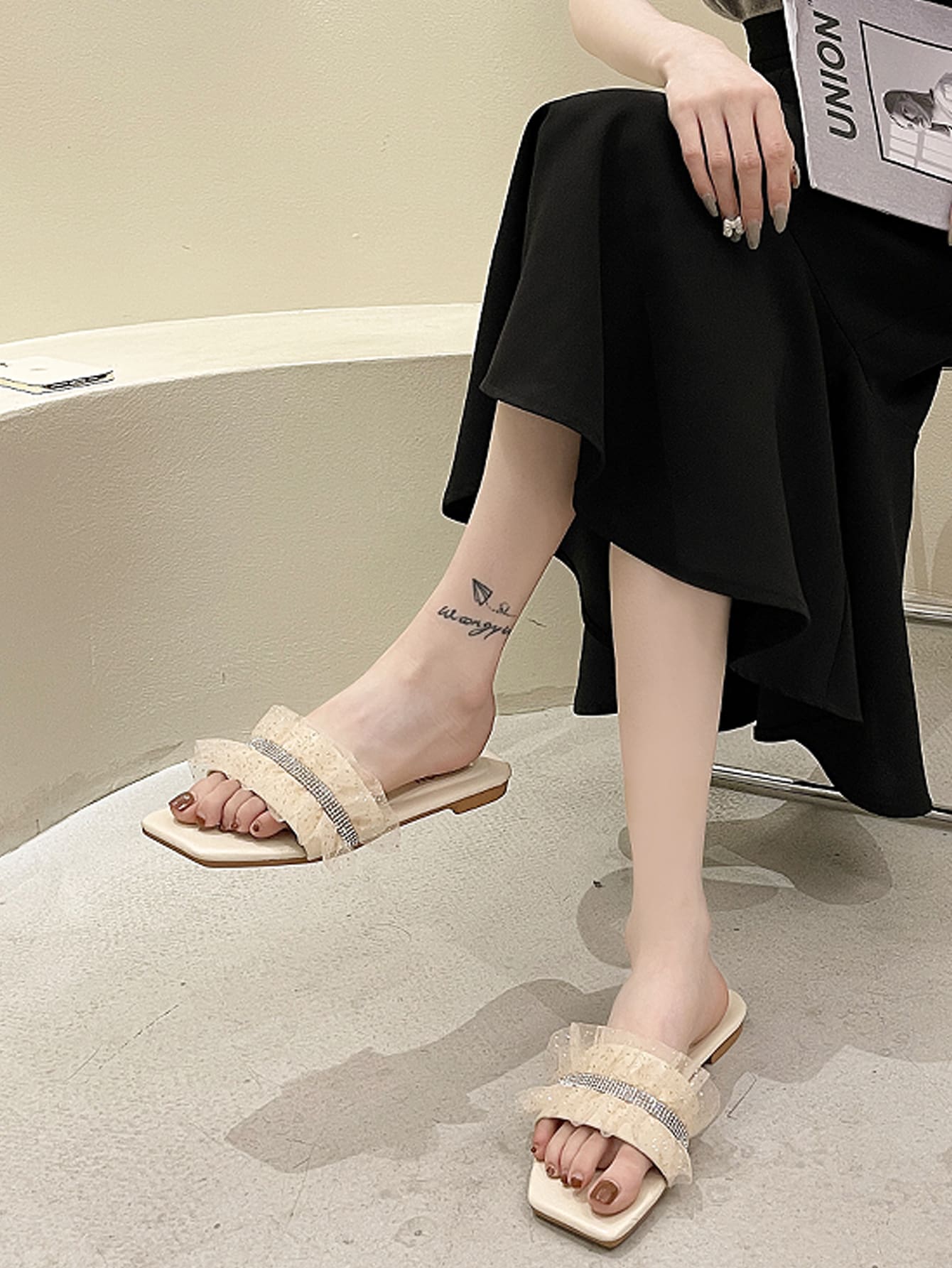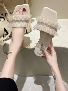 Sandales plates avec strass à volants