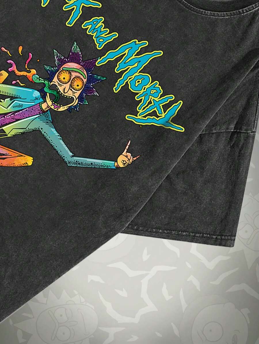 Rick and Morty | ROMWE T-shirt à manches courtes pour hommes avec imprimé de lettres et de dessins animés, école