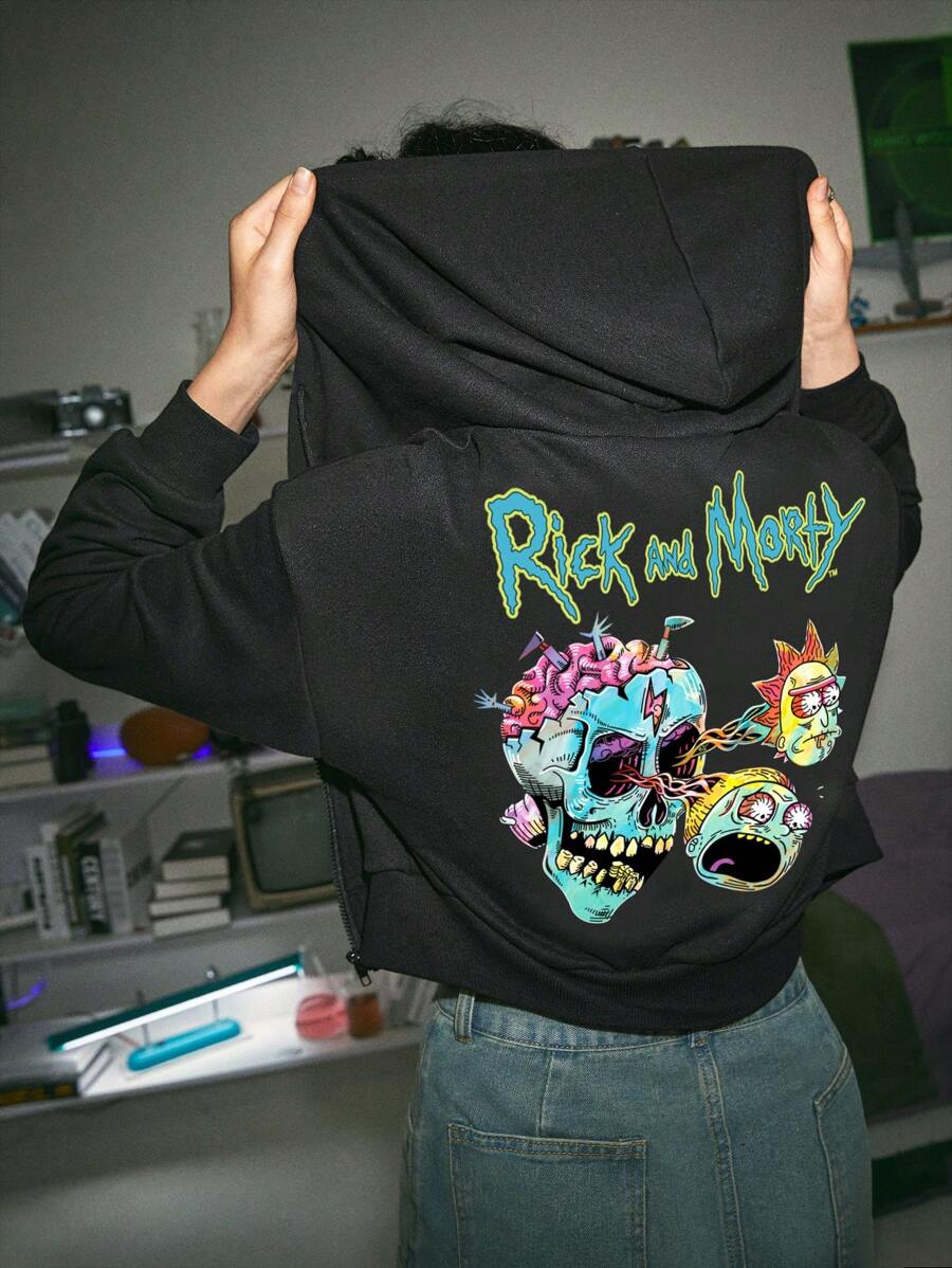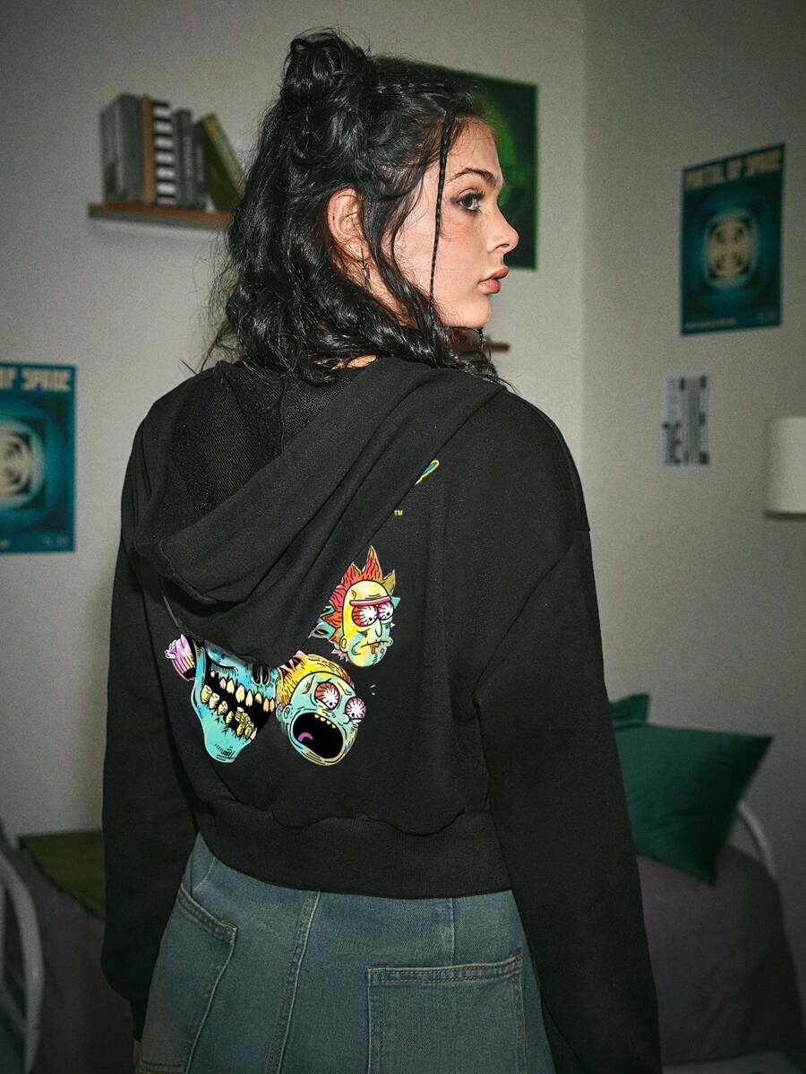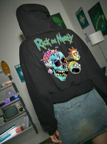Rick and Morty | ROMWE sweat-shirt à capuche avec cordon de serrage, épaules tombantes, graphique tête de mort et lettre, manches longues pour l'école