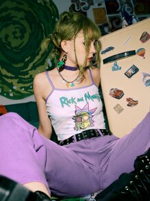 Rick and Morty | ROMWE Top à fines brides court rue lettre dessin animé à liseré contrastant