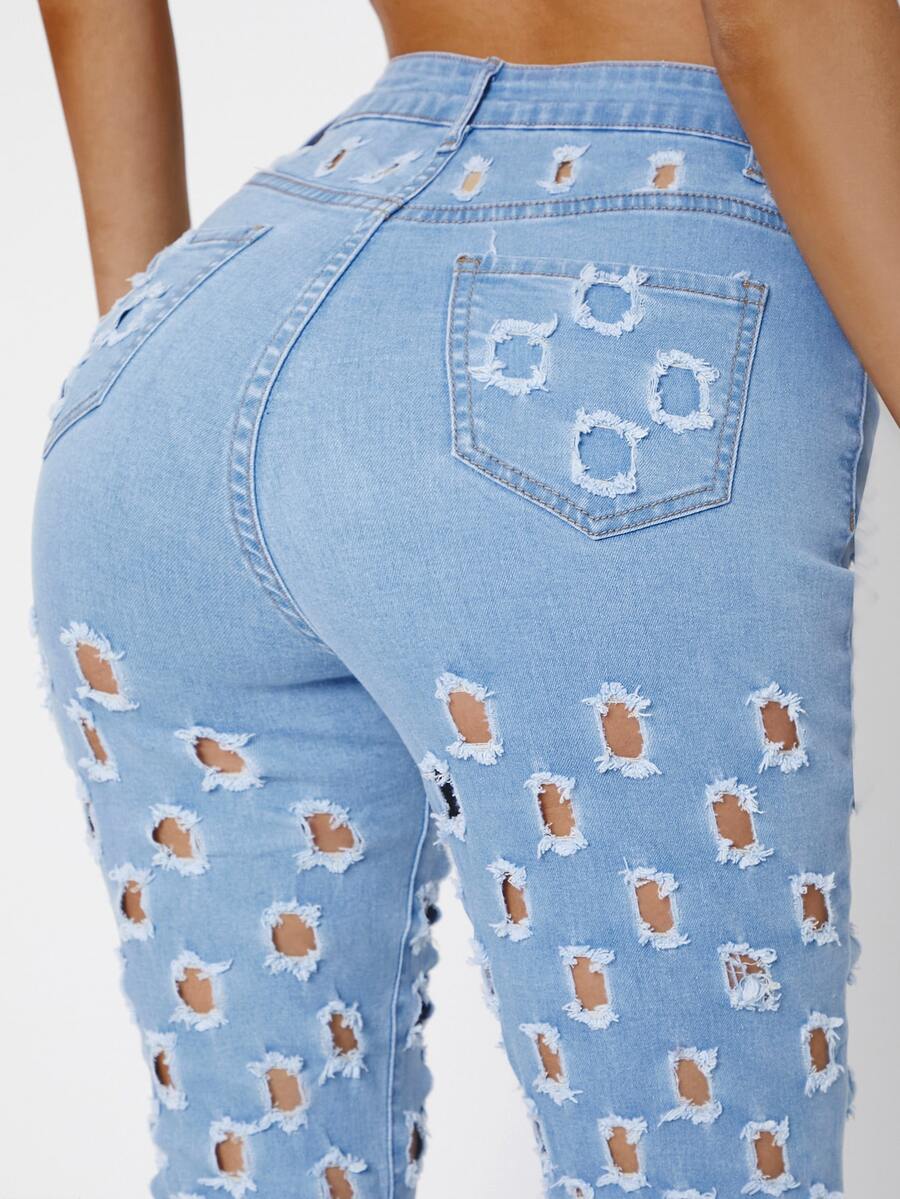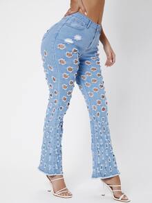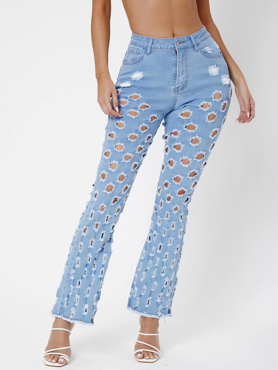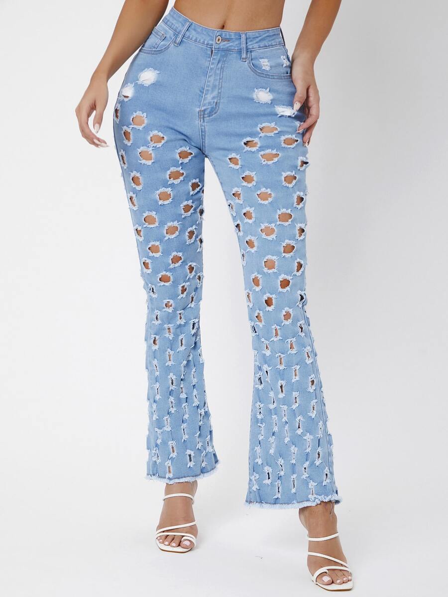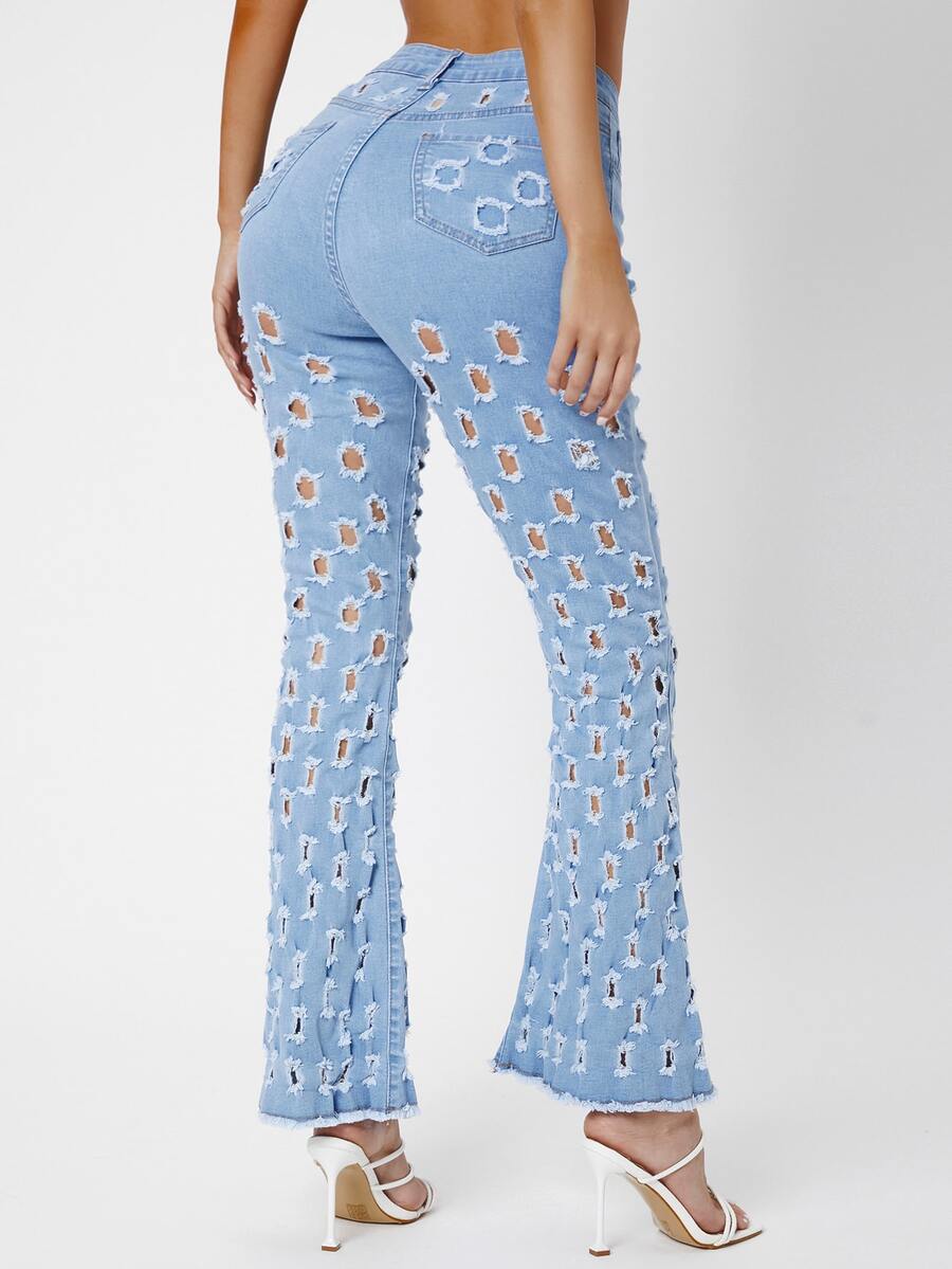 Jean évasé déchiré à ourlet effiloché