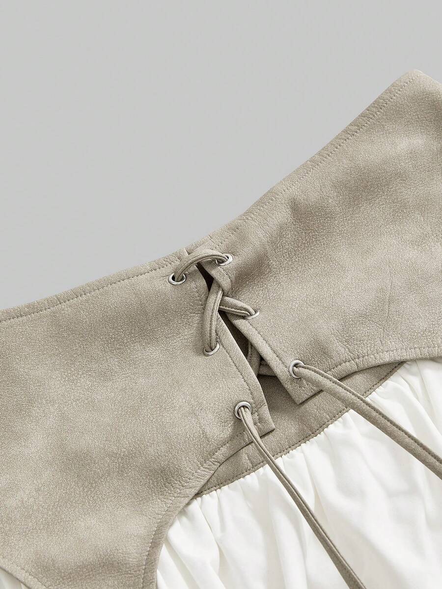 Jupe mi-longue romantique et mignonne en patchwork de daim, avec design à cordon de serrage et couleurs contrastées à motif floral
