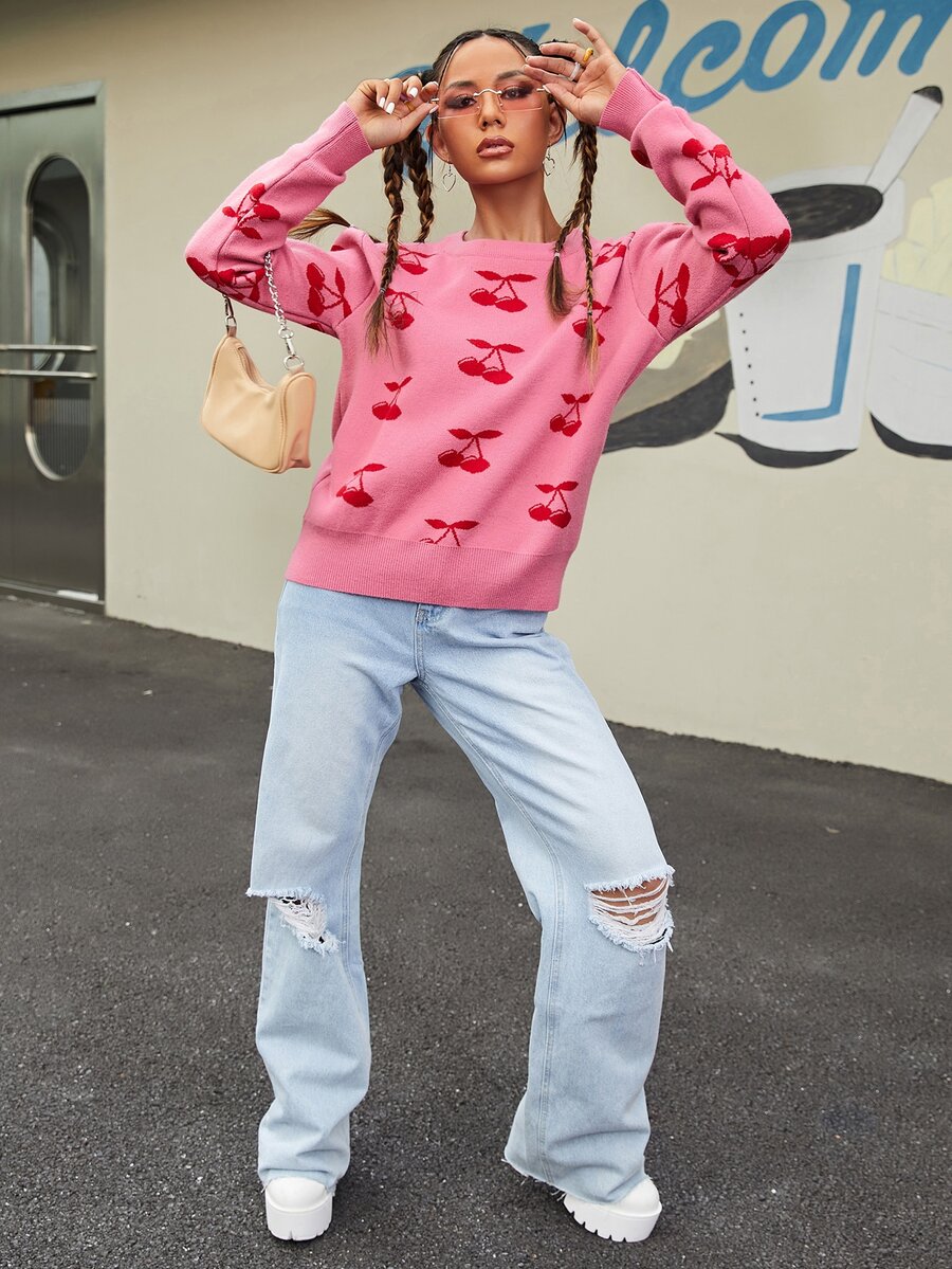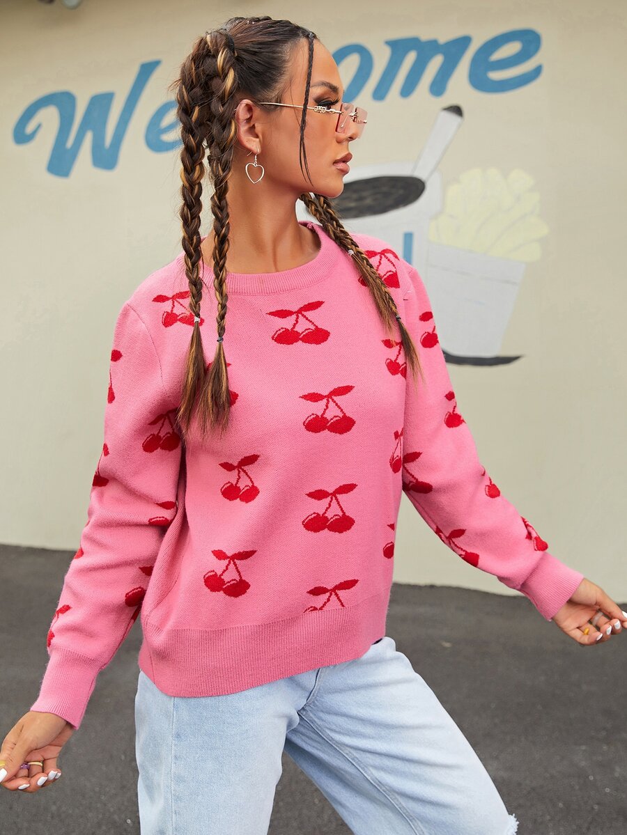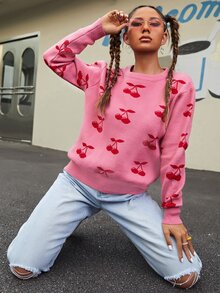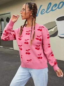 Pull à motif cerise