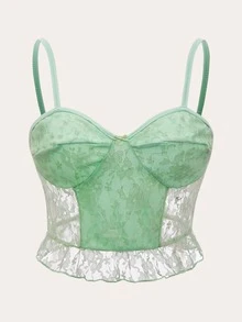 Top à fines brides à volants en dentelle