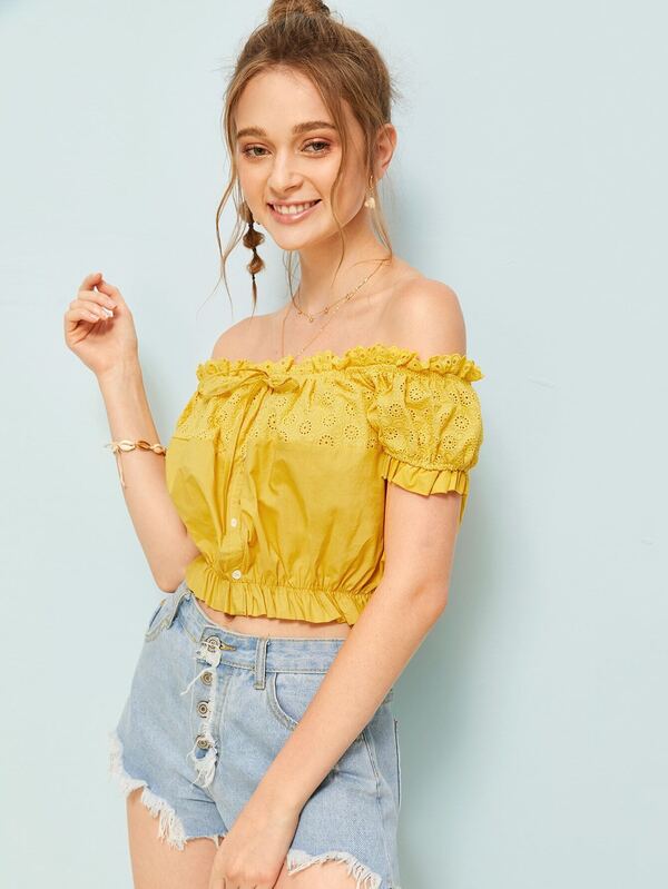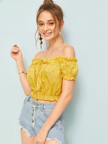 Crop Top unicolore avec volants et nœud