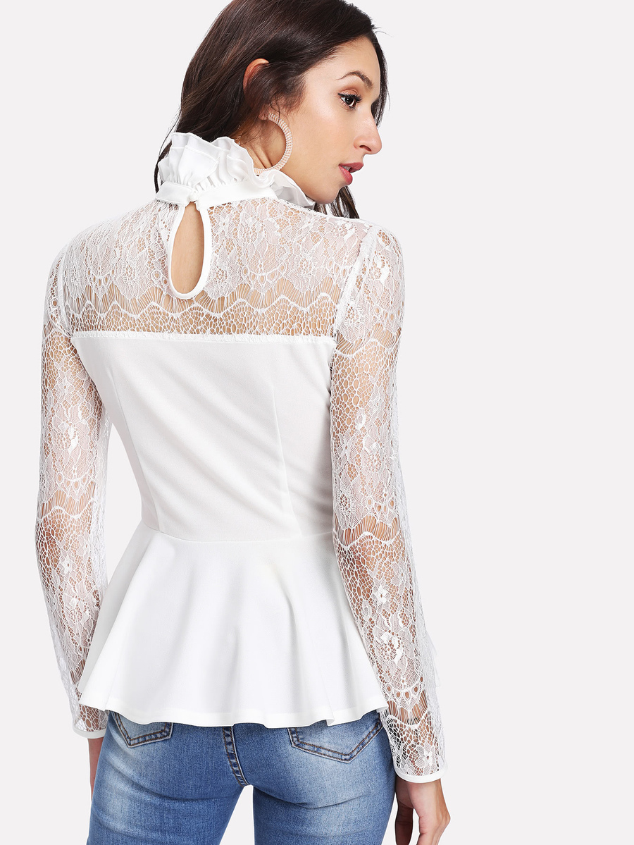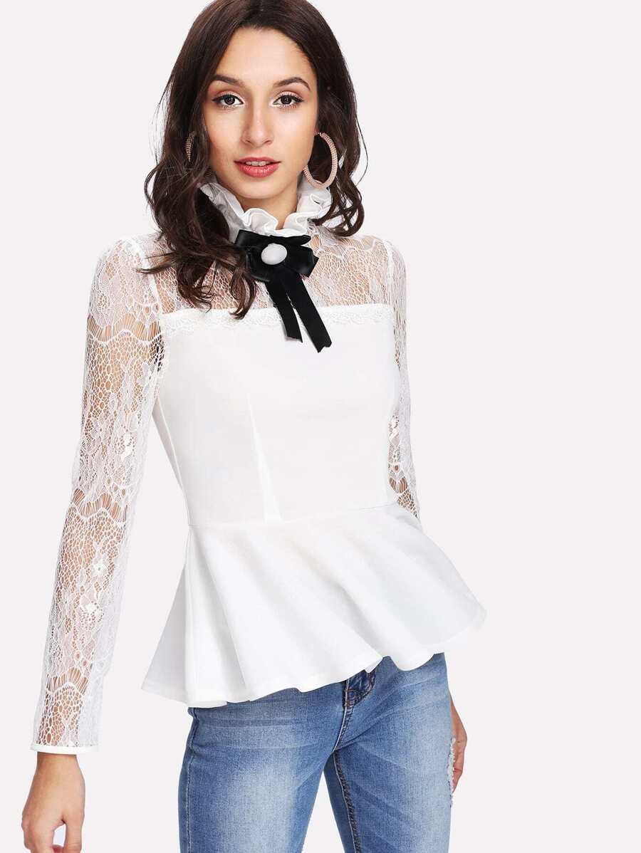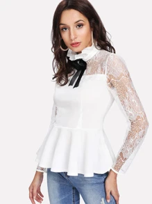 Top péplum col ruché en dentelle