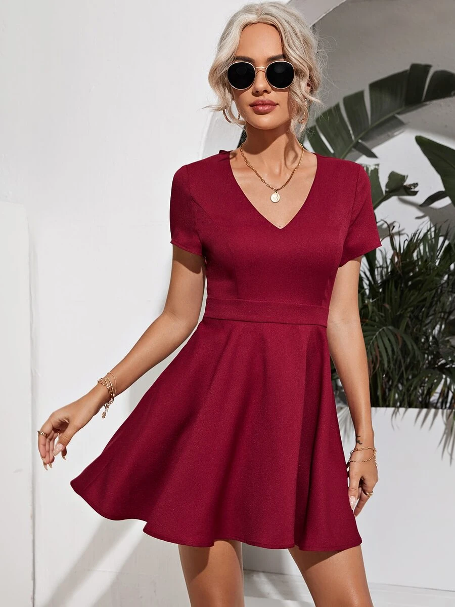 Robe dos-nu à ourlet festonné