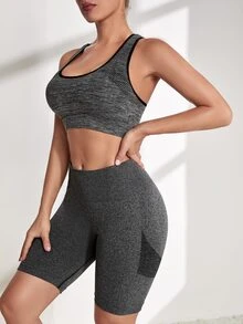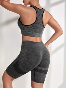 Ensemble de sport sans couture à liseré contrastant en maille chinée