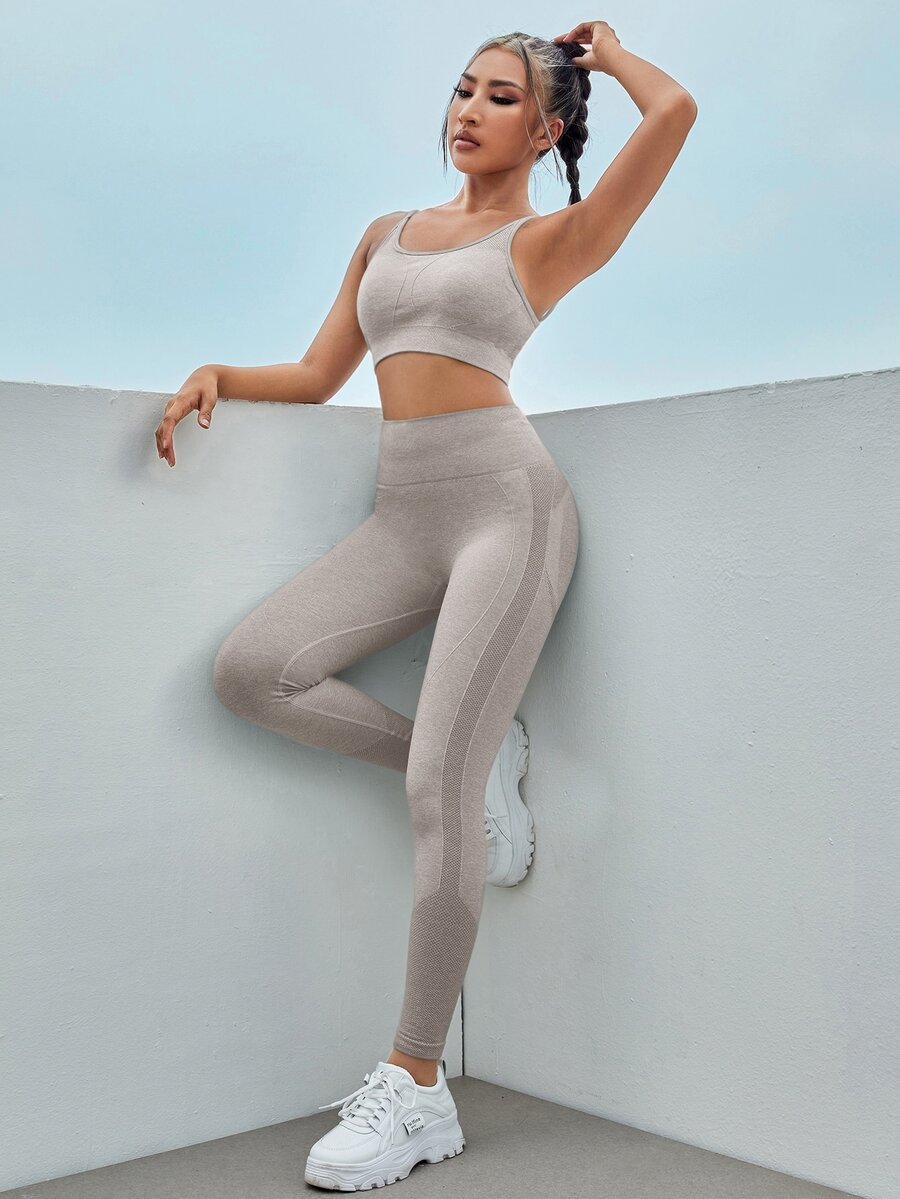 Brassière de sport sans couture élasticité élevé & Legging taille haute