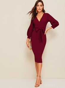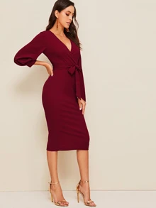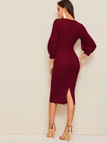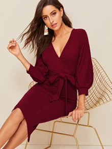 Robe cache-cœur fendue avec ceinture