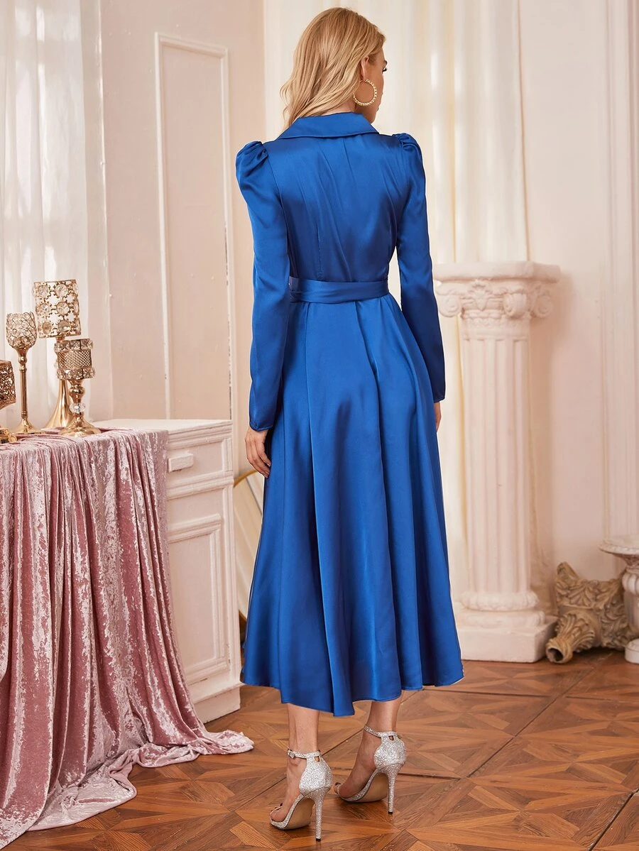 Robe en satin à manches gigot avec ceinture