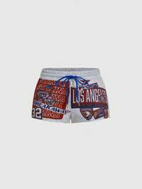 Street Life Short décontracté ample avec imprimé lettre et cordon de serrage à la taille avec poches pour femmes
