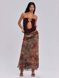 Jupe longue vintage à taille très basse avec imprimé floral boho grunge style Y2K pour vacances