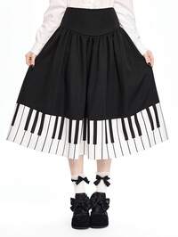 Jupe évasée à motif de touches de piano gothique pour femmes