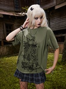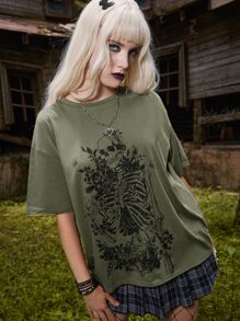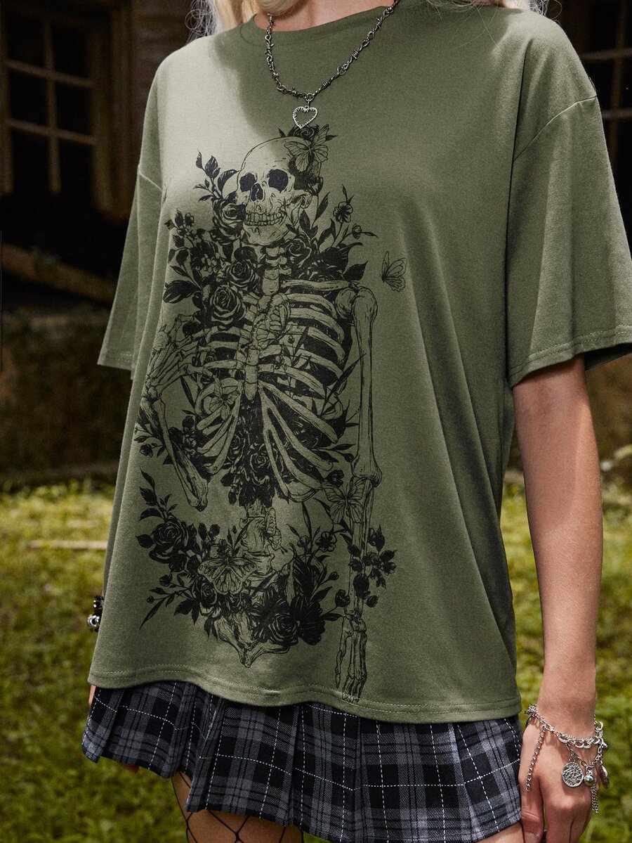 Goth T-shirt squelette fleuri