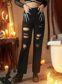 Jean déchiré squelette
