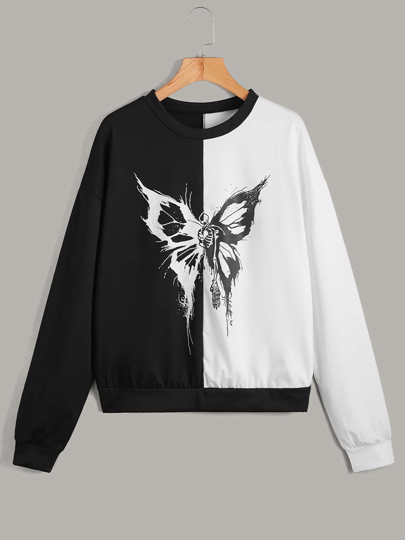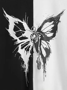 Sweat-shirt tête de mort & papillon à blocs de couleurs