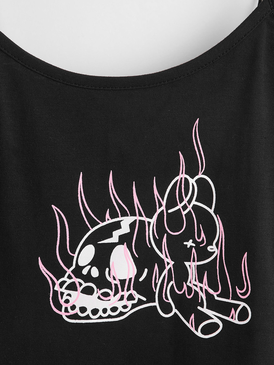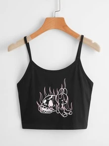 Top à fines brides court à motif de flamme