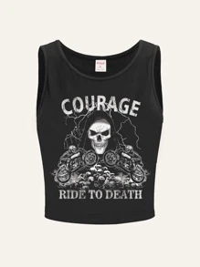 Top Sans Manches Motif Tête De Mort Et Lettre