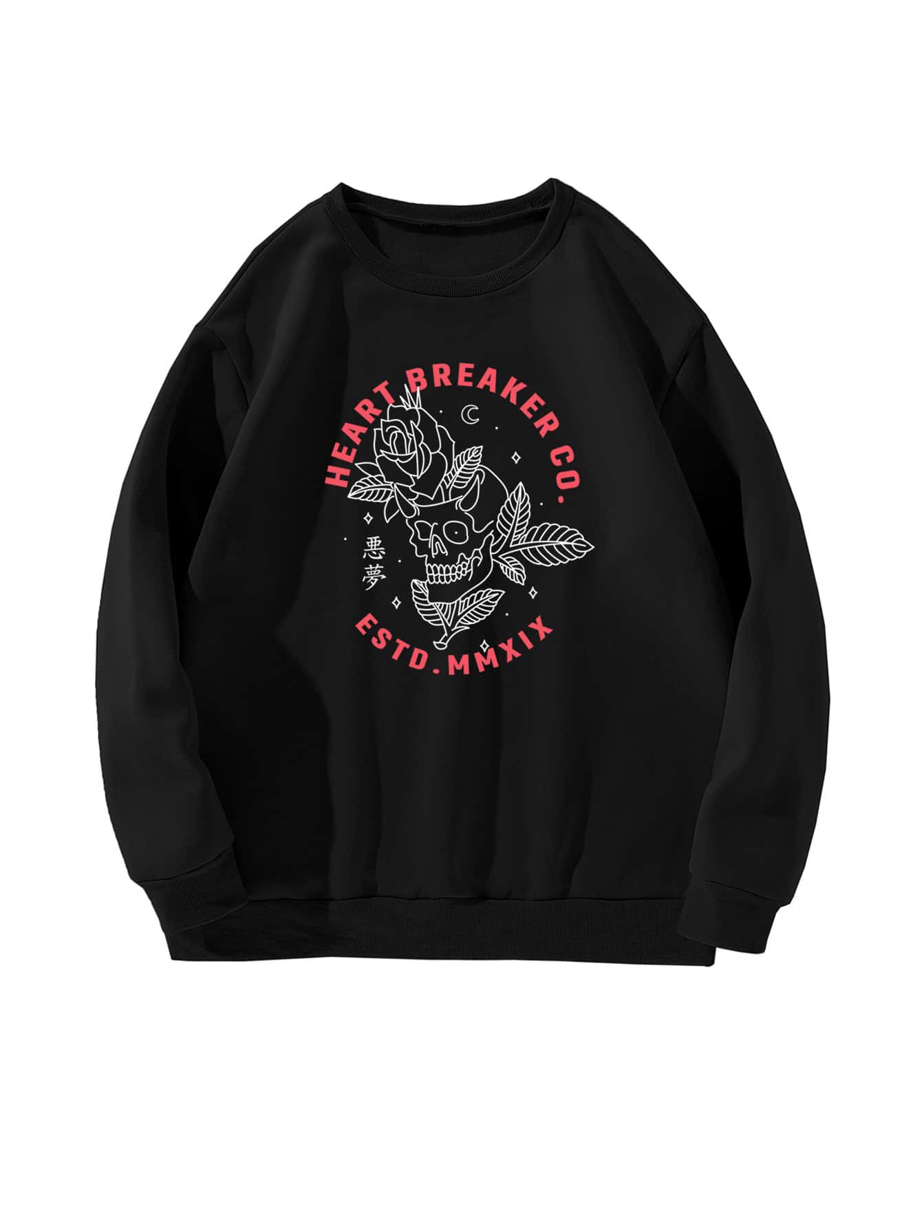 Sweat-shirt tête de mort à lettres à doublure thermique