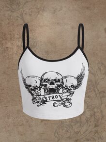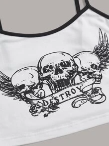 Top à fines brides à imprimé tête de mort à liseré contrastant