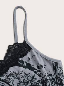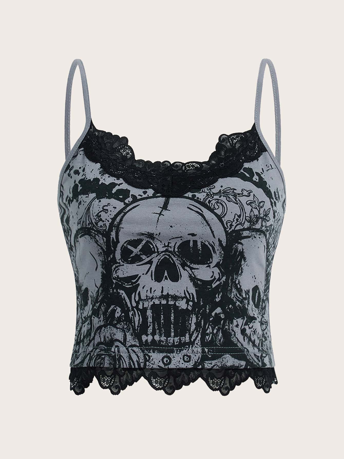 Top à fines brides à imprimé tête de mort en dentelle
