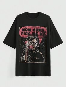 Eduely T-shirt Imprimé Tête De Mort Épaule tombante