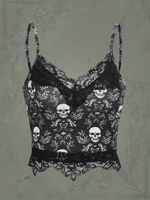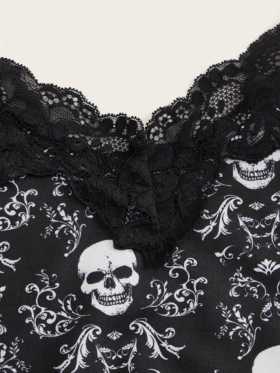 Goth Top à fines brides en dentelle à imprimé tête de mort