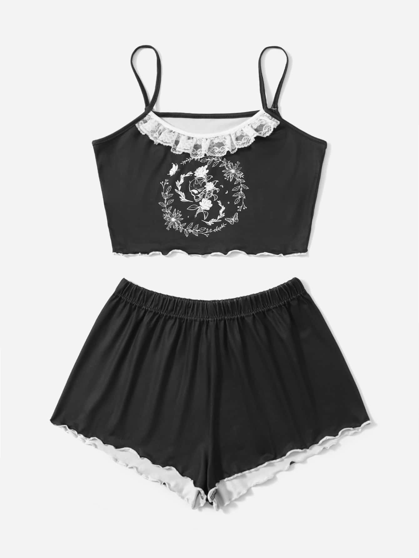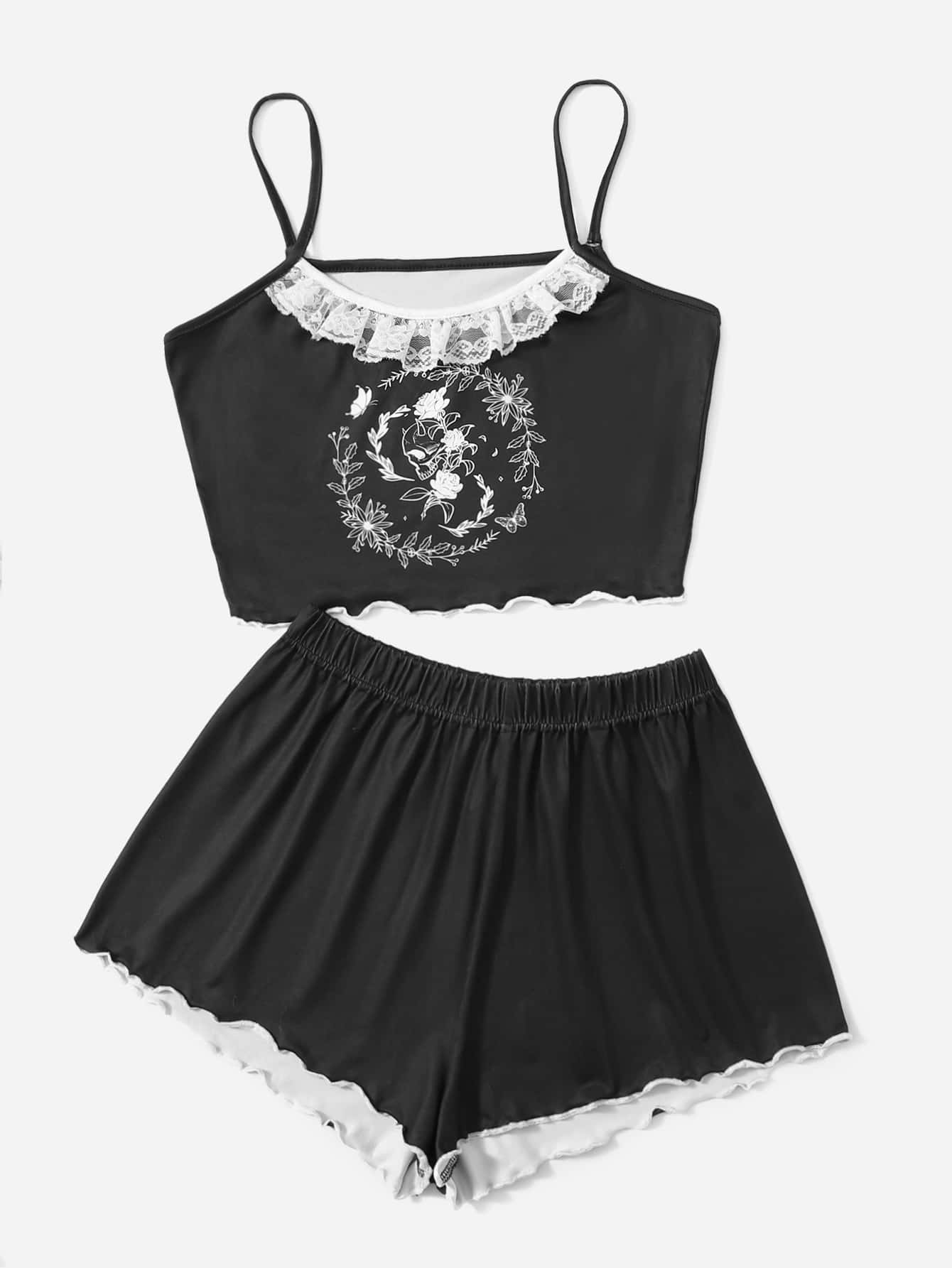 Ensemble de pyjama à imprimé tête de mort à ourlet ondulé
