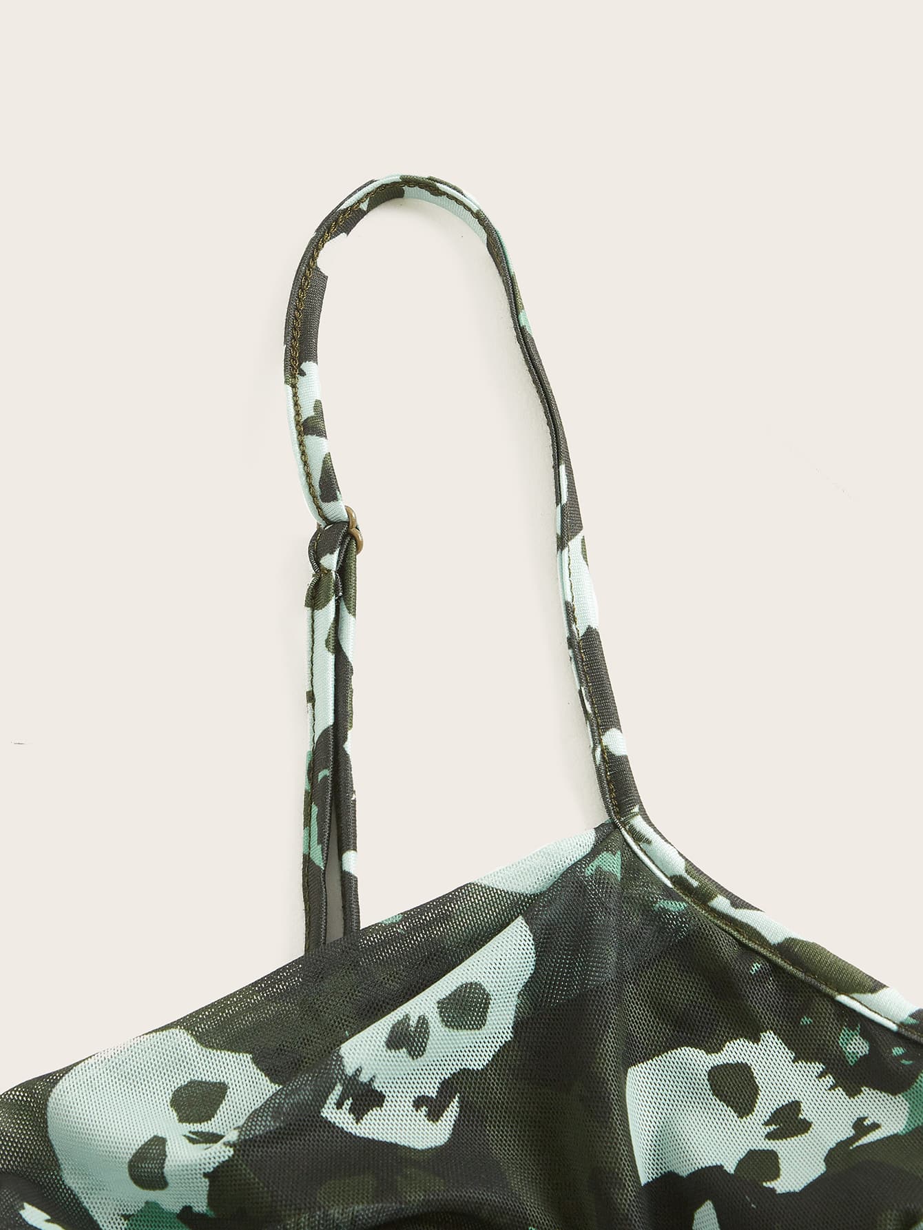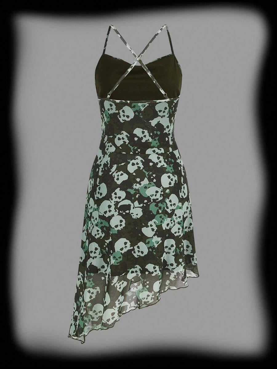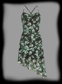 Robe À Fines Brides Imprimé Tête De Mort À Ruché Asymétrique En Tulle
