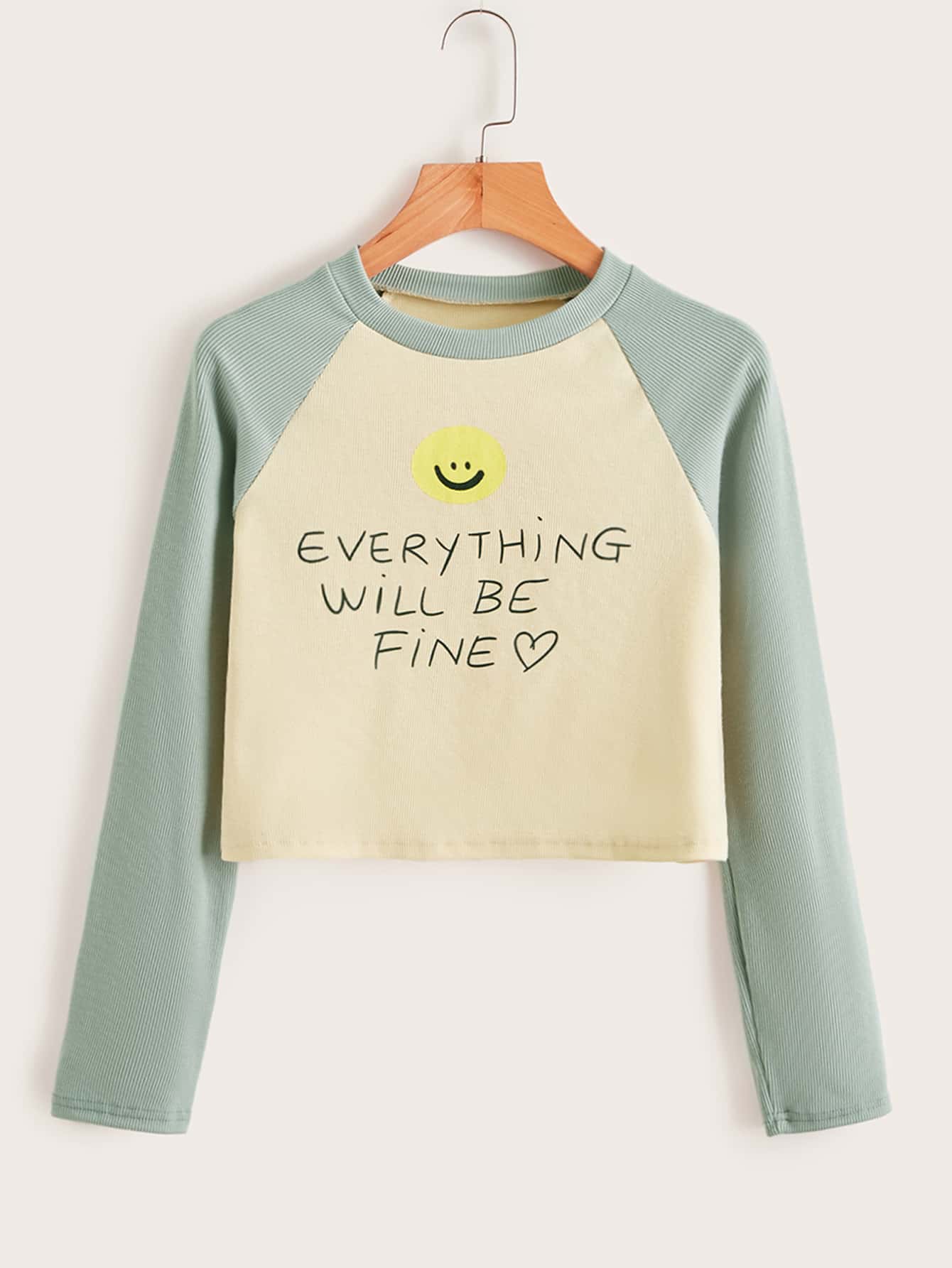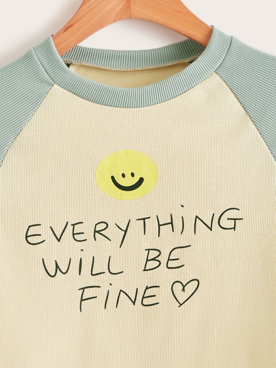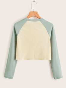 T-shirt court à slogan dessin animé à blocs de couleurs