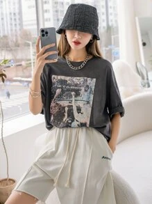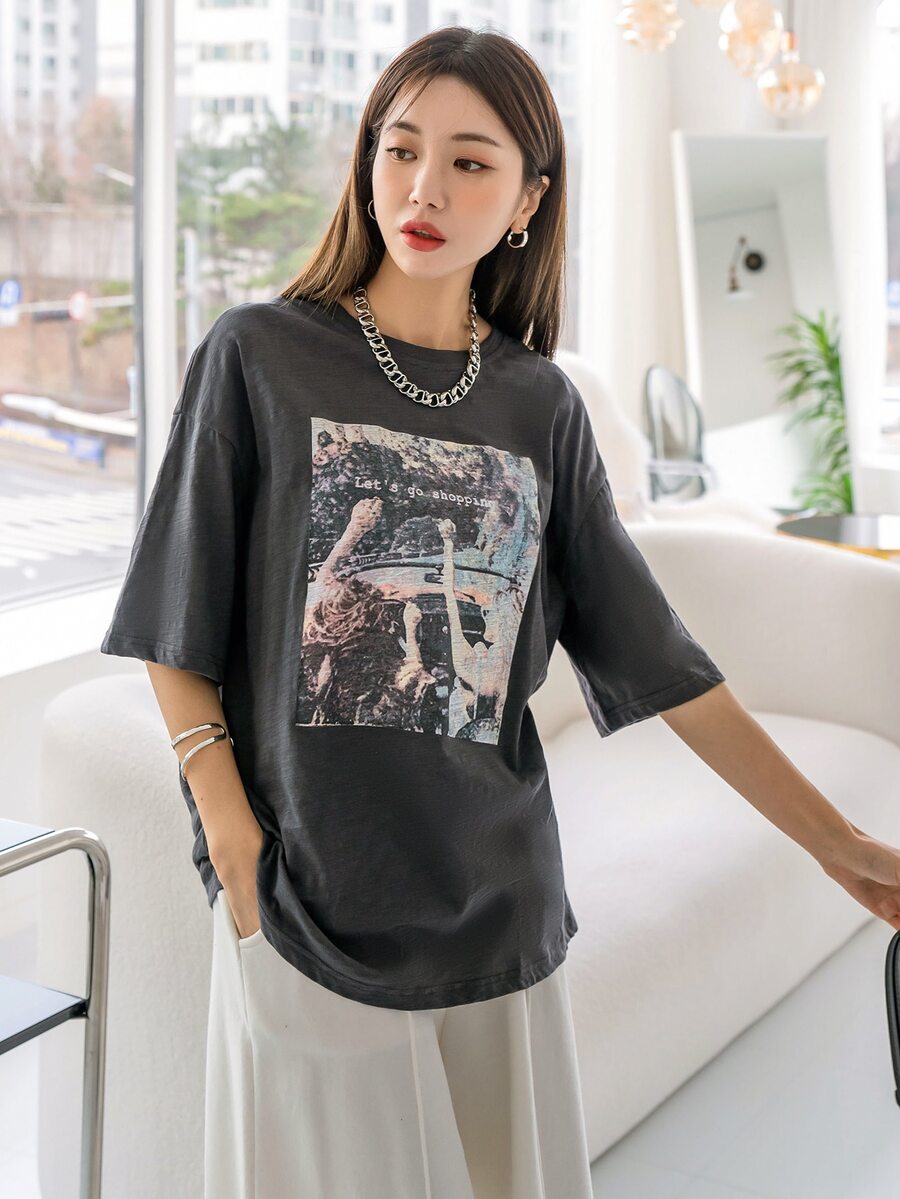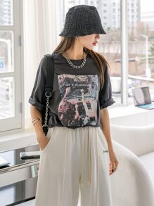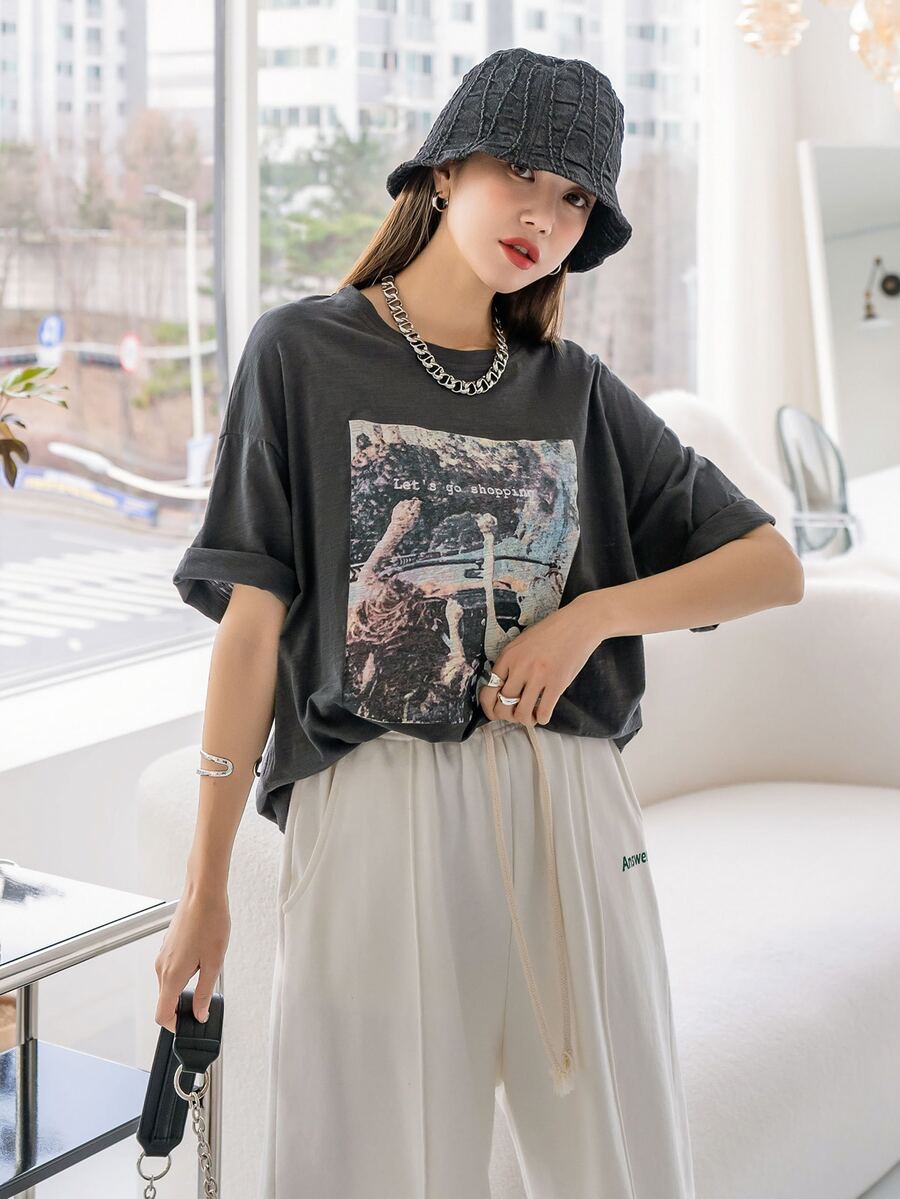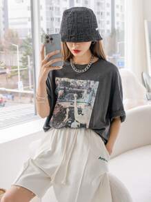 T-shirt à motif figure et slogan