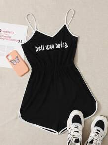 Combishort à fines brides à imprimé avec liseré contrastant