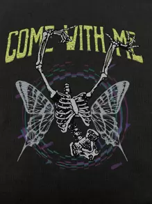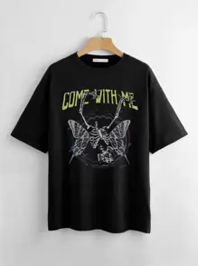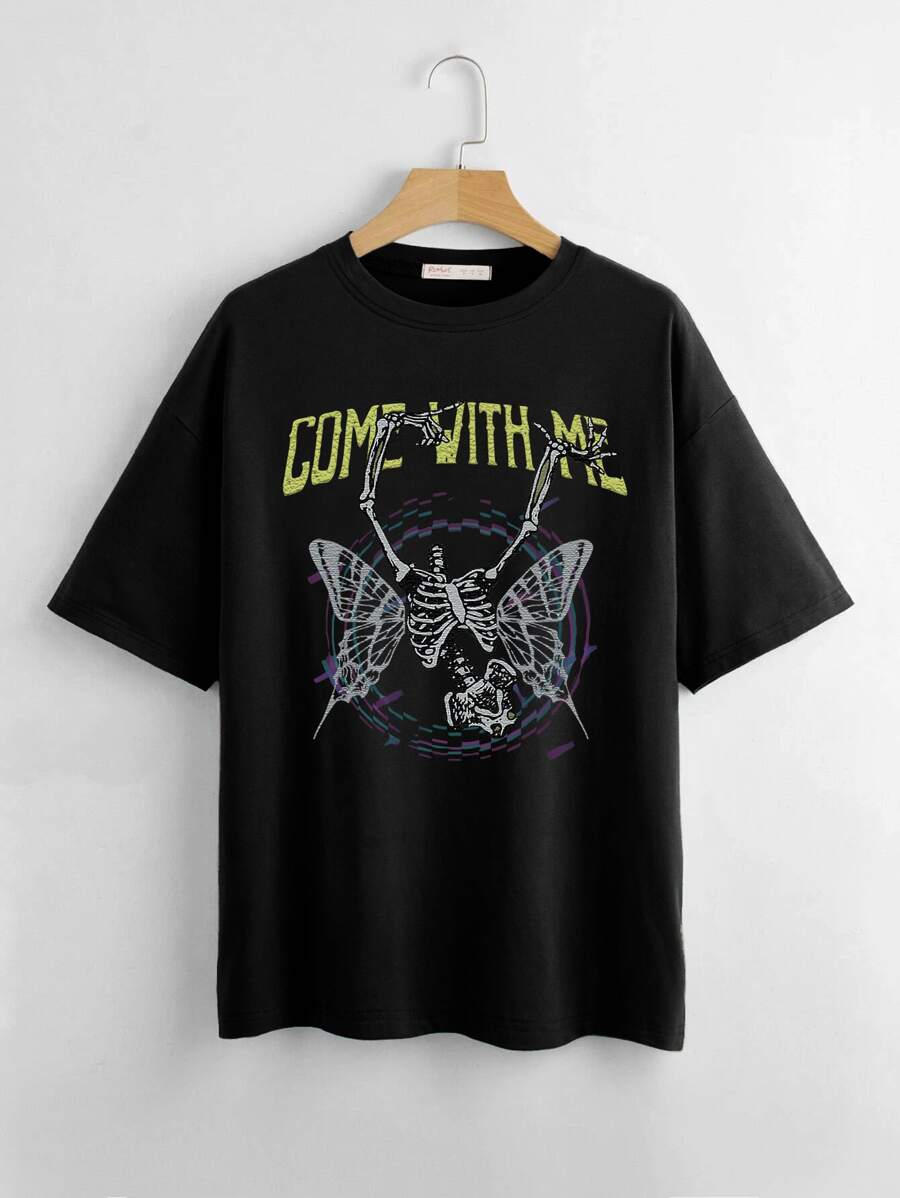 T-shirt slogan Tête De Mort & Papillon