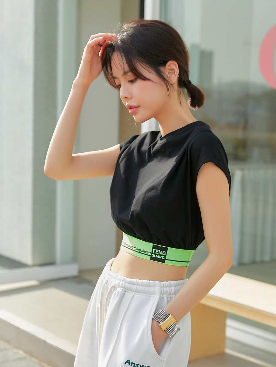 Top sans manches avec imprimé slogan