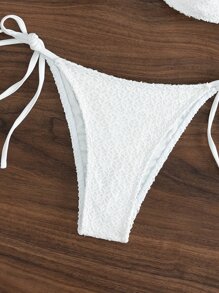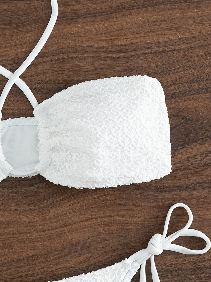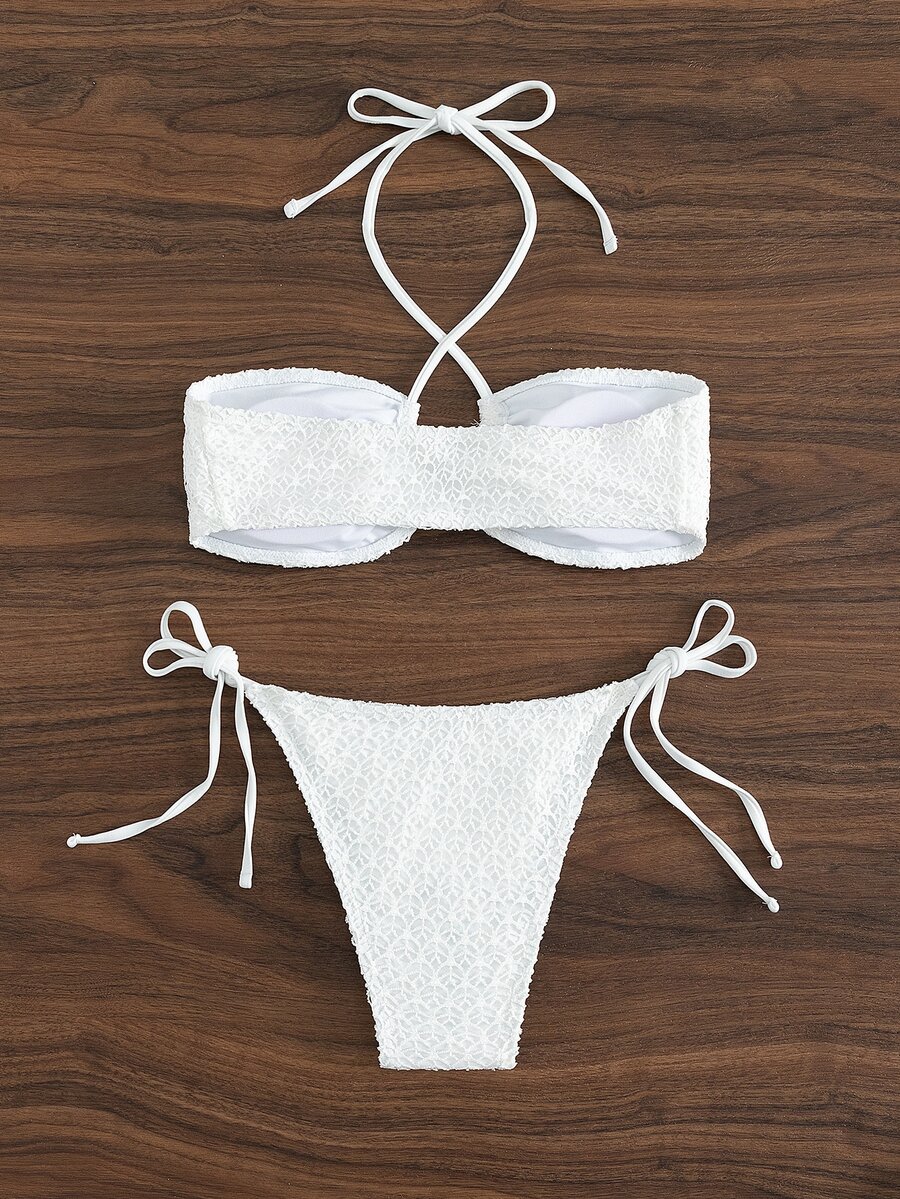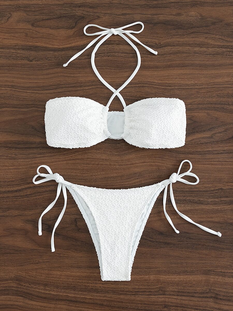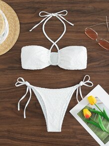 Ensemble bikini d'été pour plage, avec lien en smocks, ras-du-cou et côtés noués