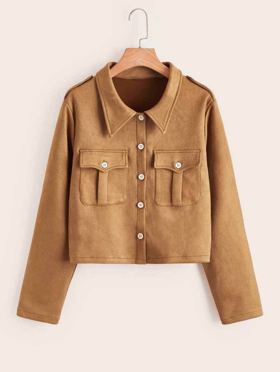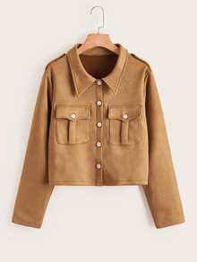 Veste courte unicolore à bouton à poche