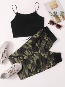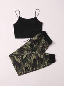 Ensemble top à fines brides et pantalon de survêtement à imprimé camouflage