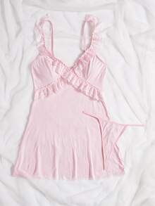 Robe de nuit unicolore en dentelle & Tanga
