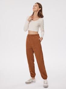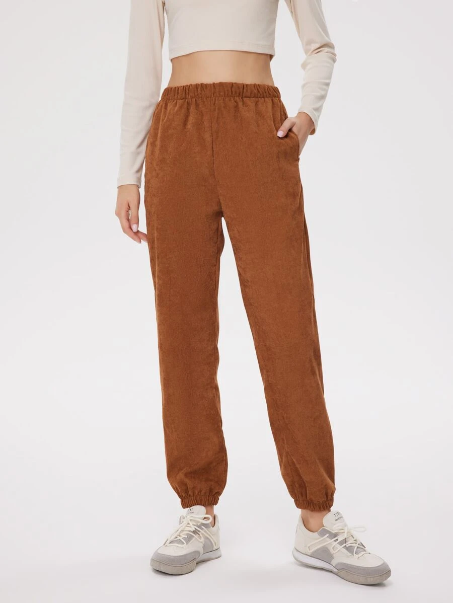 Pantalon de jogging unicolore en velours côtelé