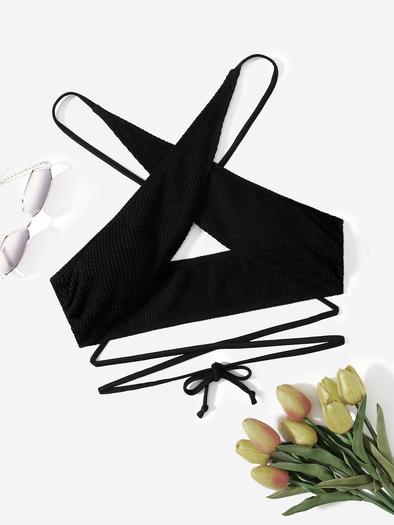 Haut de bikini unicolore croisé