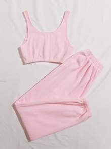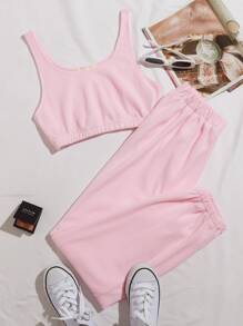Ensemble pantalon et top court unicolore