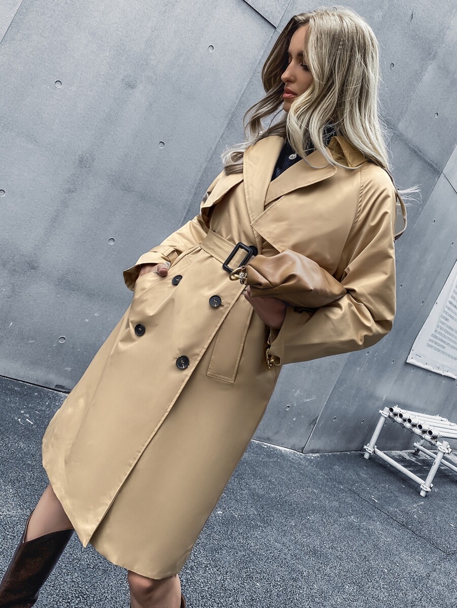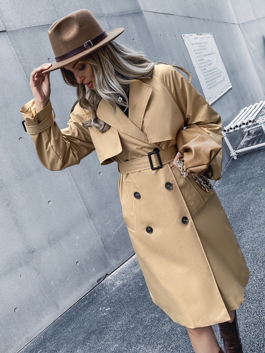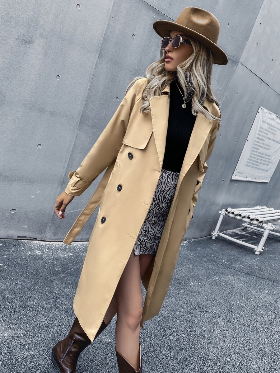 Trench ceinturé unicolore avec boutons