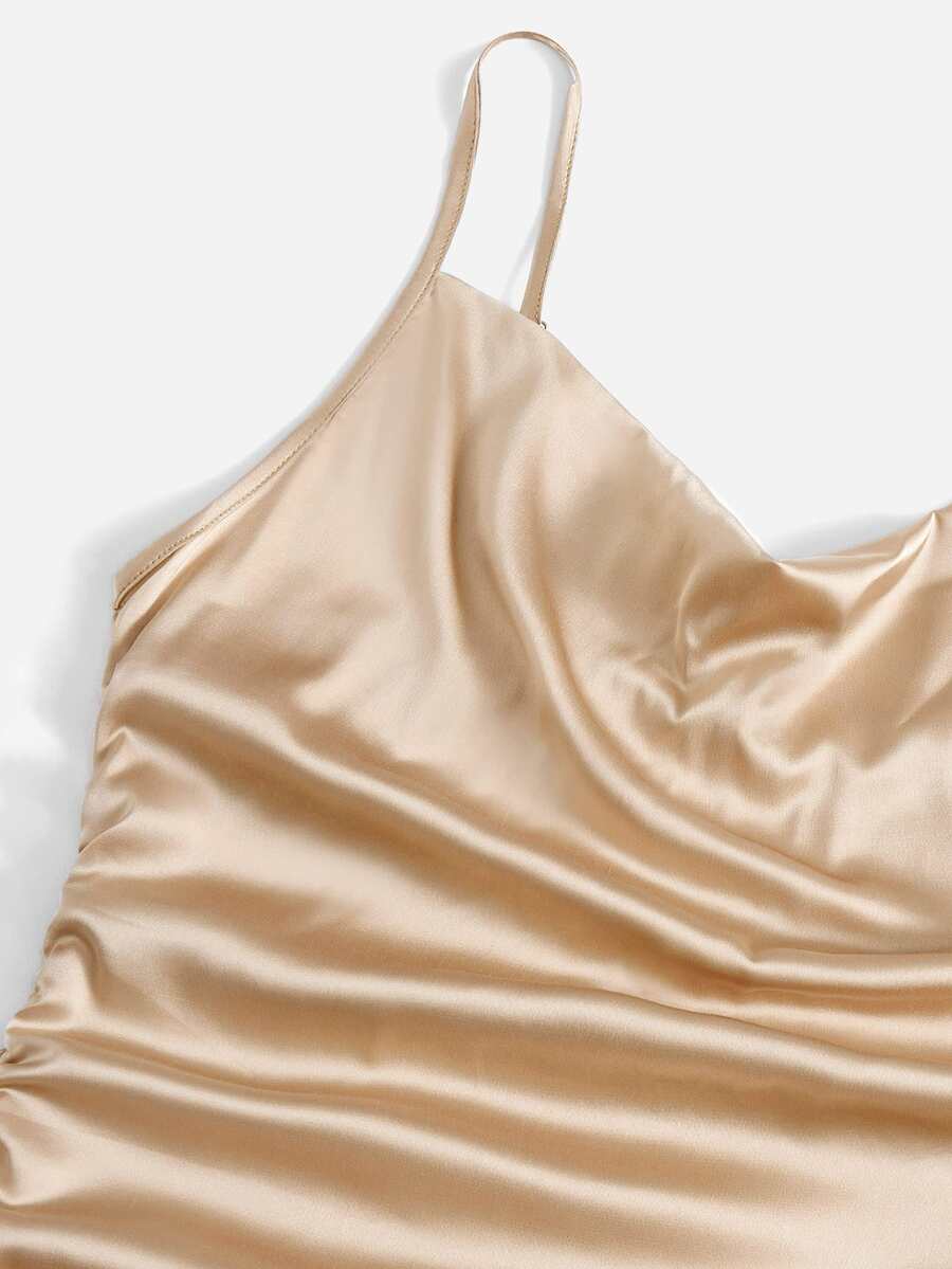 Robe unicolore à cordon à ruché en satin