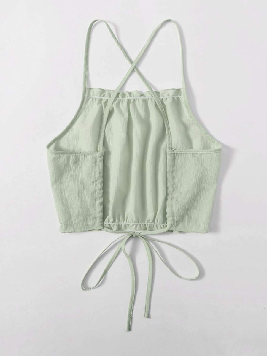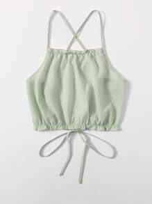 Top à fines brides unicolore avec plis