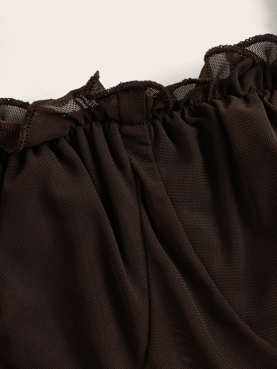 Top Unicolore À Plis À Épaules Dénudées En Tulle