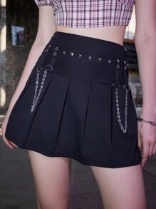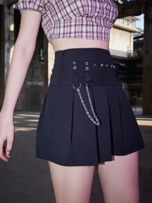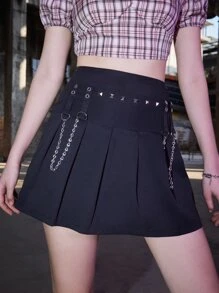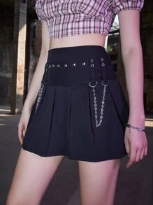 Grunge Punk Jupe plissée unicolore avec chaîne